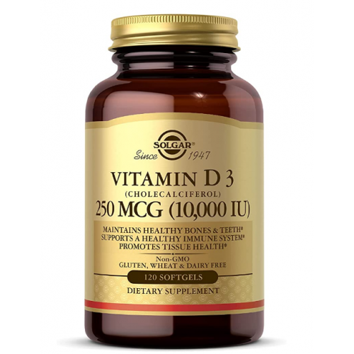 Solgar Vitamin D3 (Cholecalciferol) 250 MCG (10,000 IU), 120 Softgels - Helps Maintain Healthy Bones & Teeth - Immune System Support - Non GMO, Gluten Free, Dairy Free - 120 Servings
